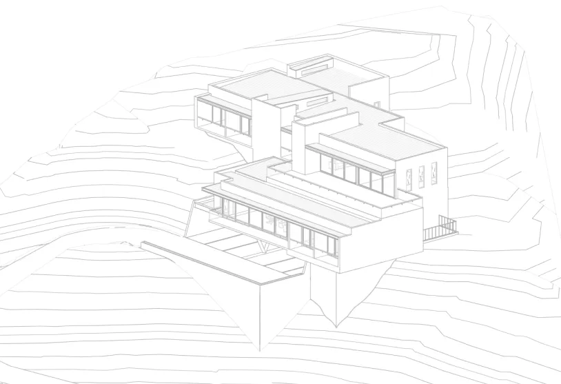 Una obra maestra de la arquitectura contemporánea, combinando un diseño innovador con la conexión con la naturaleza. La estructura de la casa se integra al entorno montañoso y se dispone en tres niveles escalonados, adaptandose a la topografia original. Para sus aspecto estetico, se utilizaron materiales como el acero y concreto pulido, buscando el equilibrio con el paisaje natural.