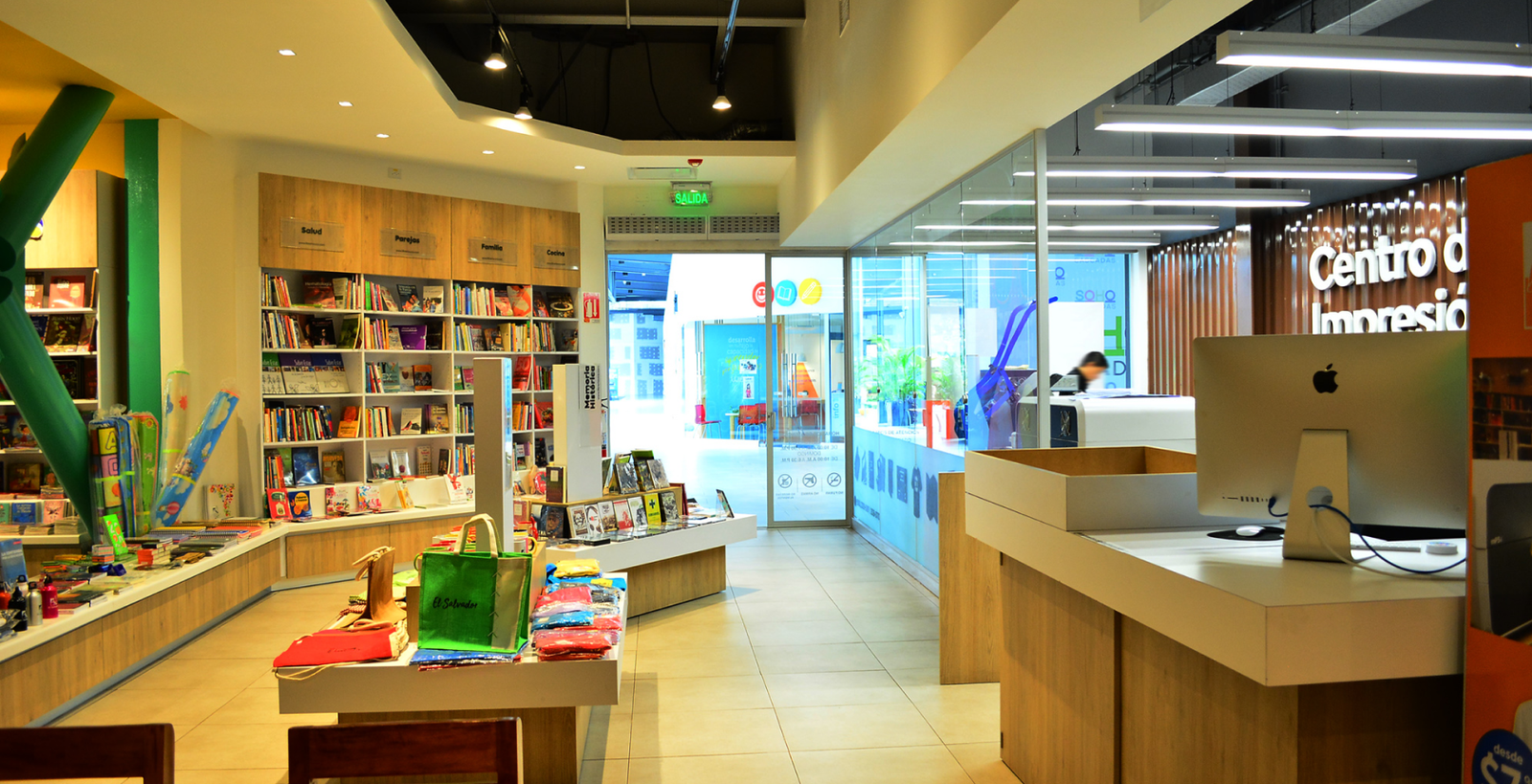 Ubicada en plaza SOHO, Las Cascadas, en un local con un área de 278.36 m². El proyecto comprendió la ejecucion de la obra civil, acabados y fabricación de mobiliario, la cual se dividía en distintas áreas como: área de imprenta, área infantil, área de libros y cafetería. El mobiliario se fabricó cuidando cada detalle de sus acabados.